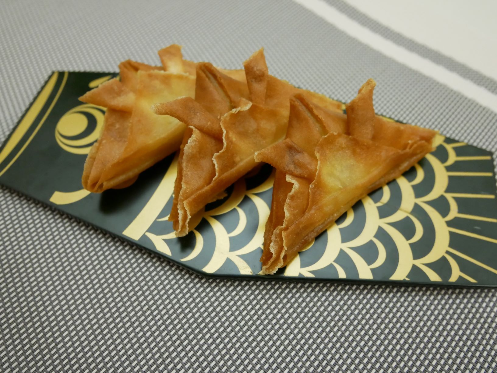 春巻きの皮を折り紙の兜を折る要領で折っていく。